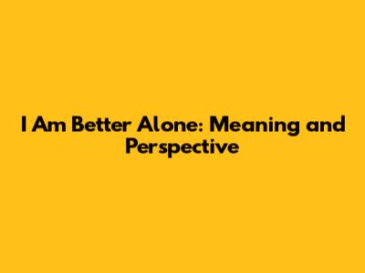 I Am Better Alone: Meaning And Perspective