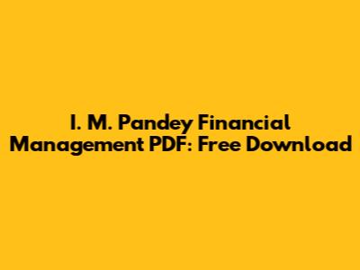 I. M. Pandey Financial Management PDF: Free Download