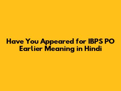 Hey guys! Ever wondered what someone means when they ask, "Have you appeared for IBPS PO earlier?" Well, let's break it down, especially if you need to understand it in Hindi. The IBPS PO exam is a big deal for those wanting to get into the banking sector in India. So, let's get right into understanding this common question.