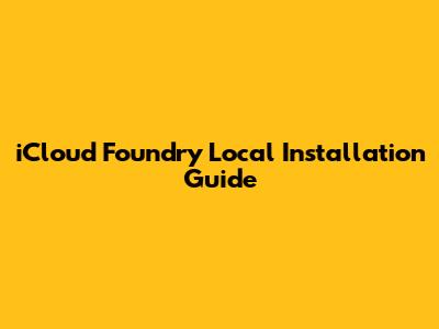 ICloud Foundry Local Installation Guide