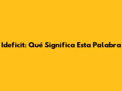 Ideficit: Qué Significa Esta Palabra