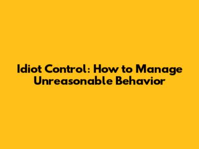 Idiot Control: How To Manage Unreasonable Behavior