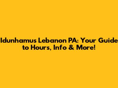 Idunhamu's Lebanon PA: Hours, Info & More!