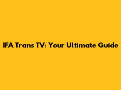 IFA Trans TV: Your Ultimate Guide