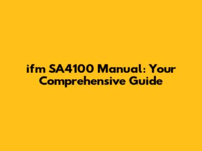 Ifm SA4100 Manual: Your Comprehensive Guide