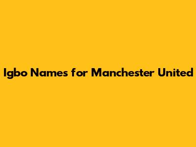 Igbo Names For Manchester United