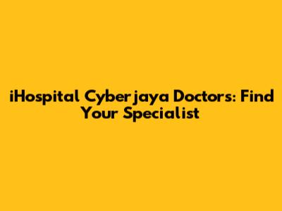 Finding the right doctor at iHospital Cyberjaya involves a combination of research, preparation, and understanding your own healthcare needs. By navigating the hospital's website, understanding medical specialties, preparing for your appointment, and utilizing online resources, you can confidently find a specialist who meets your requirements. Remember, your health is your most valuable asset, so take the time to find the best possible care.