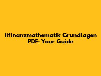 Iifinanzmathematik Grundlagen PDF: Your Guide