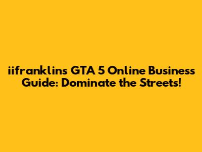 Iifranklin's GTA 5 Online Business Guide: Dominate The Streets!