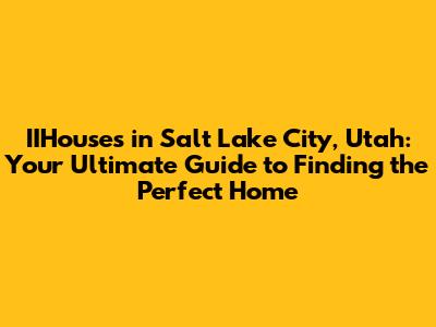 IIHouses: Your Guide To Salt Lake City, Utah Homes