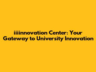 Iiiinnovation Center: Your Gateway To University Innovation