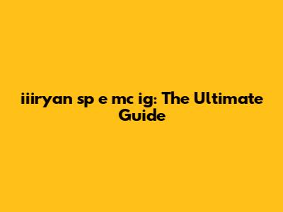 Iiiryan Sp E Mc Ig: The Ultimate Guide
