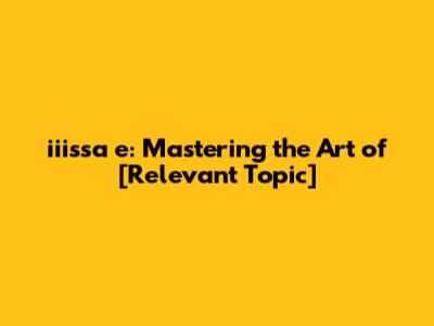 Iiissa E: Mastering The Art Of [Relevant Topic]