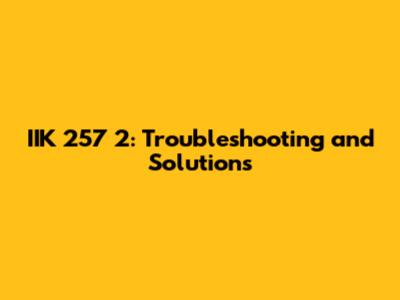 IIK 257 2: Troubleshooting And Solutions