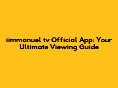 Iimmanuel Tv Official App: Your Ultimate Viewing Guide