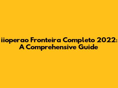 Iioperao Fronteira Completo 2022: A Comprehensive Guide