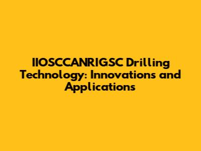 IIOSCCANRIGSC Drilling Technology: Innovations And Applications