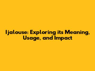 Ijalouse: Exploring Its Meaning, Usage, And Impact