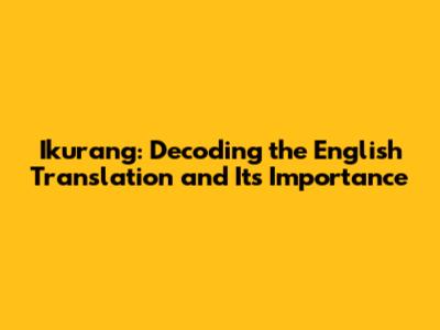 Ikurang: Unveiling The English Translation & Significance