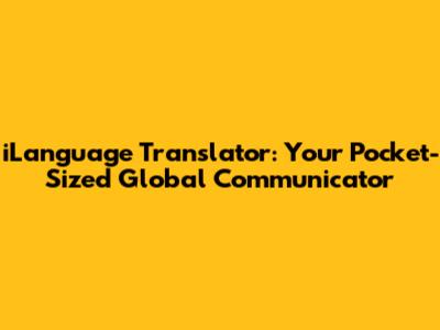 ILanguage Translator: Your Pocket-Sized Global Communicator
