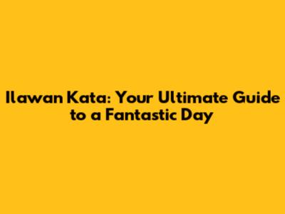 Ilawan Kata: Your Guide To A Great Day