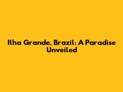 Ilha Grande, Brazil: A Paradise Unveiled