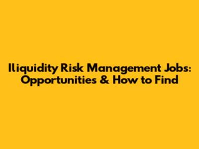 Iliquidity Risk Management Jobs: Opportunities & How To Find