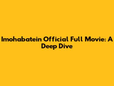 Hey guys! Are you looking for Imohabatein official full movie? You've come to the right place. In this article, we'll delve into everything you need to know about this popular movie, including where to watch it, what makes it special, and some interesting behind-the-scenes details. So, grab your popcorn, and let's get started!