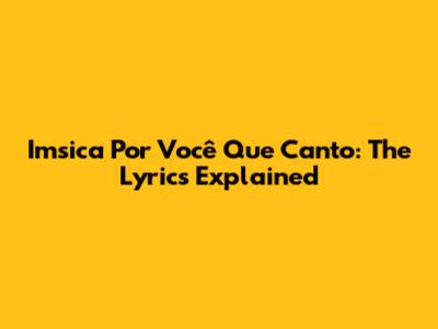 Imsica Por Você Que Canto: The Lyrics Explained