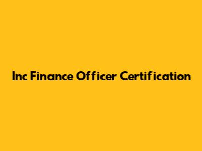 How to Obtain the Inc Finance Officer Certification