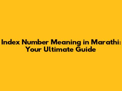 Index Number Meaning In Marathi: Your Complete Guide