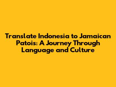 Hey guys! Ever wondered about translating from the vibrant sounds of Indonesian to the rhythmic beats of Jamaican Patois? It's a fascinating journey, and in this article, we'll dive deep into the world of translating Indonesian to Jamaican Patois. We'll cover everything from the basic phrases and vocabulary to the cultural nuances that make this translation process so unique. Buckle up, because we're about to explore a linguistic landscape that's as diverse as it is exciting! This guide will equip you with the knowledge and tools you need to successfully navigate this linguistic adventure. From greetings to common expressions, we'll uncover the secrets of both languages and explore how they connect. Let's get started translating Indonesian to Jamaican Patois!