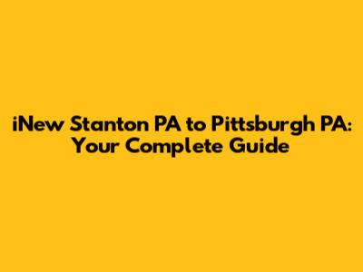 INew Stanton PA To Pittsburgh PA: Your Complete Guide