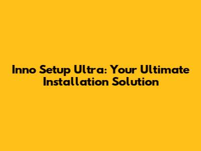Inno Setup Ultra: Your Ultimate Installation Solution