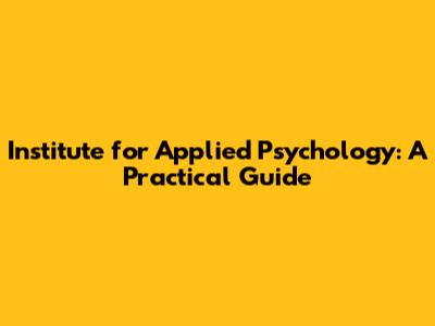 Institute For Applied Psychology: A Practical Guide