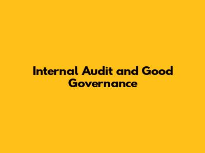 Internal Audit: Key To Good Governance