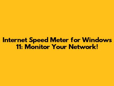 Internet Speed Meter For Windows 11: Monitor Your Network!