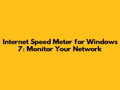 Internet Speed Meter For Windows 7: Monitor Your Network