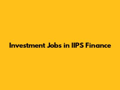 Investment Jobs In IIPS Finance