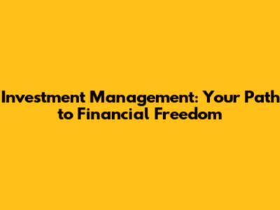 Investment Management: Your Guide To Financial Success