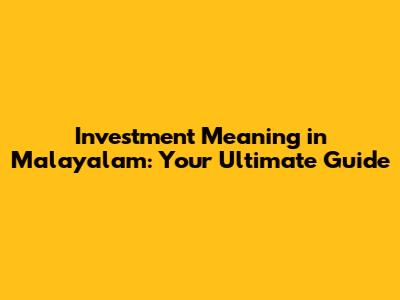 Investment Meaning In Malayalam: Your Comprehensive Guide