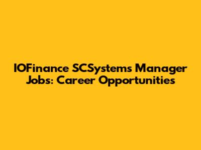 IOFinance SCSystems Manager Jobs: Career Opportunities