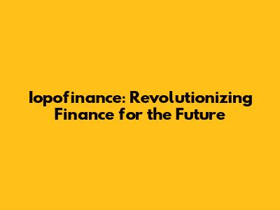 Iopofinance: Revolutionizing Finance For The Future
