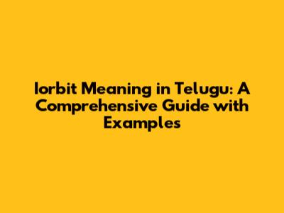 Iorbit Meaning In Telugu: Understanding And Usage