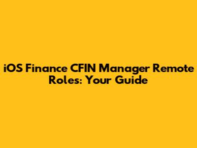 IOS Finance CFIN Manager Remote Roles: Your Guide