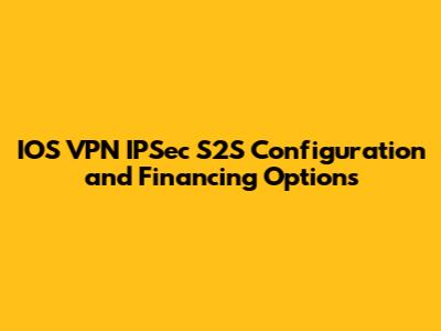 IOS VPN IPSec S2S configuration, while technically intricate, is a manageable task with the right knowledge and approach. Understanding the available financing options is equally crucial for making informed decisions that align with your budget and business goals. By carefully planning, implementing, and maintaining your VPN, you can establish a secure and reliable connection between your networks, enabling seamless communication and collaboration.