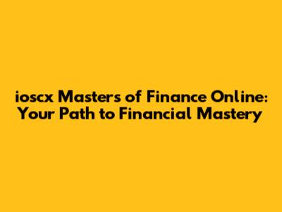Ioscx Masters Of Finance Online: Your Path To Financial Mastery
