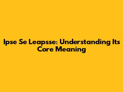 Ipse Se Leapsse: Unraveling Its Meaning And Legal Implications