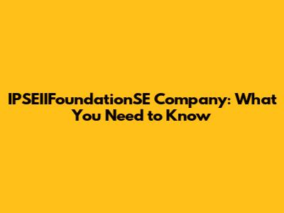 IPSEIIFoundationSE Company: What You Need To Know