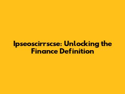Ipseoscirrscse: Unlocking The Finance Definition